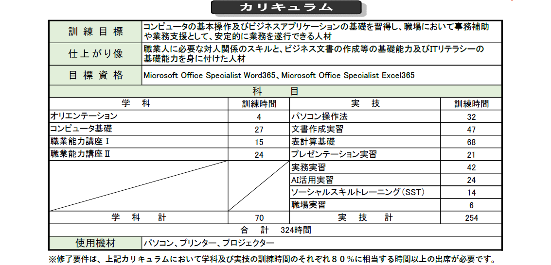 WordやExcelだけでなく、コミュニケーションや職場実習もあり、実際の仕事をイメージしながらスキルアップできます✨